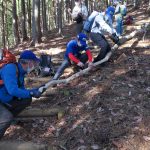 サポートレンジャーの本来目的は「都レンジャー」のサポートで、数少ないレンジャーの活動をサポートします。この活動を「協働活動」と表現しています。登山道の整備や支障木の撤去等です。また、登山者への道案内も大切な役割の一つです。2019年10月の台風19号の後は至る所で崩落がありとても大変な思いをしました。