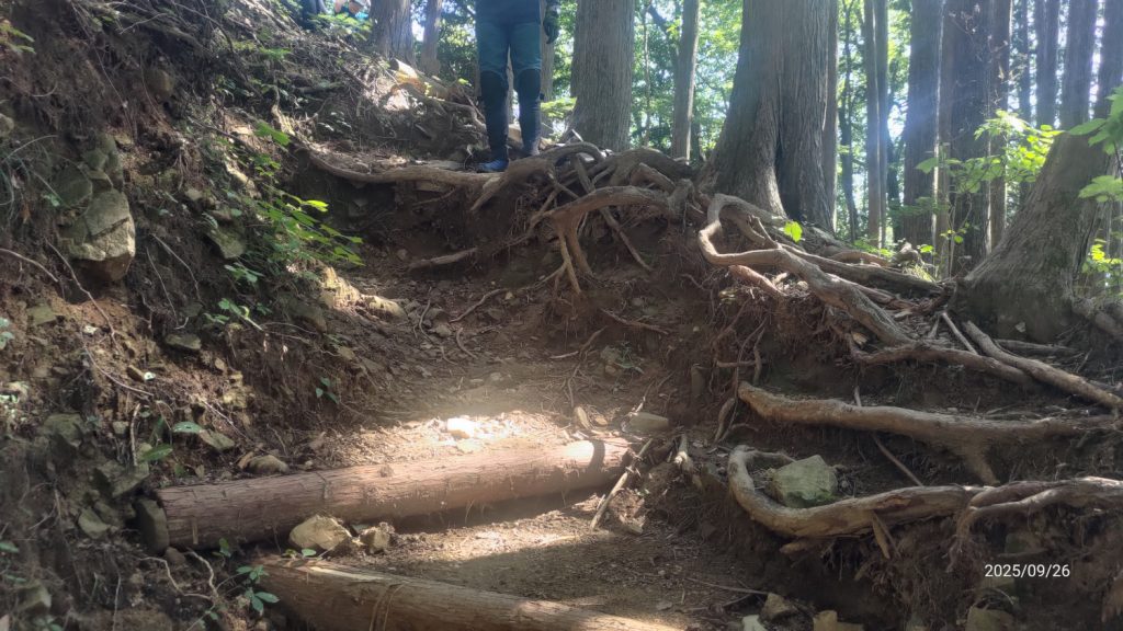 作業場所は分岐から5分程度登ったところにある箇所で、段差の解消と水切りの設置が今回の目的です。