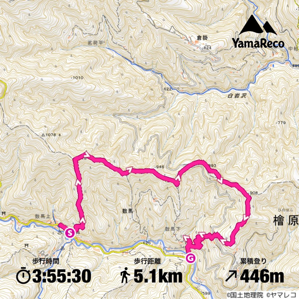 コース:武蔵五日市駅BS(バス)~仲の平BS~仲の平分岐~数馬峠~内台山~数馬分岐~浅間尾根登山口BS(バス)~武蔵五日市駅BS