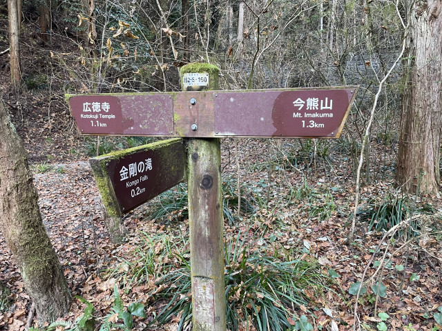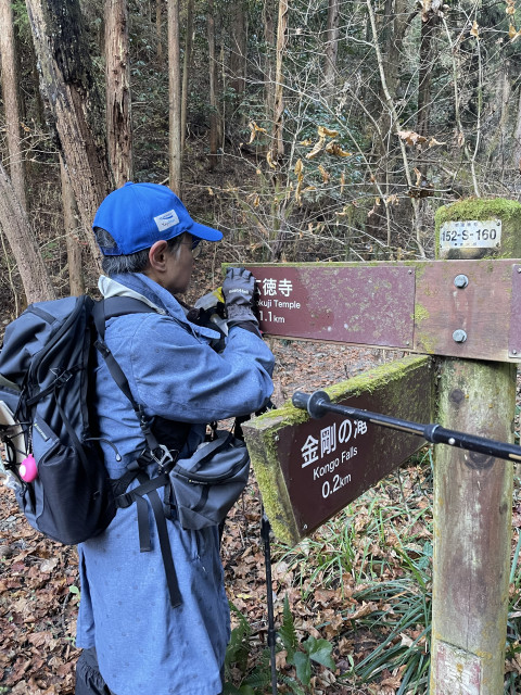 今熊山頂を経て金剛滝分岐に至ります。金剛滝を目指して急坂を下ります。