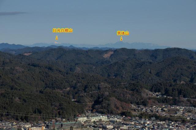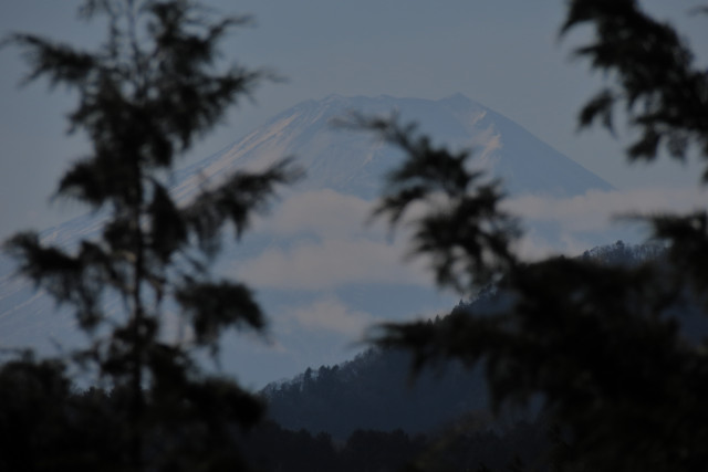 今熊山山頂手前で、見晴らしの良い東屋のある広場に到着。西に富士山、東に日光方面の山々、筑波山が展望できました。富士山は東屋の中から、木樹を通して、かろうじて見ることができます。