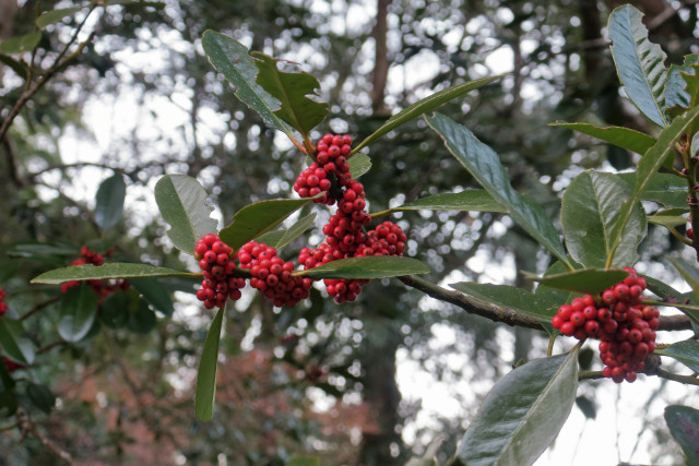 金剛滝を過ぎ、山道を下ると広徳寺に出ます。広徳寺では、イチョウ、タラヨウ、カヤが有名。この内、タラヨウ、カヤは東京都指定天然記念物だそうです。タラヨウには実がついていました。