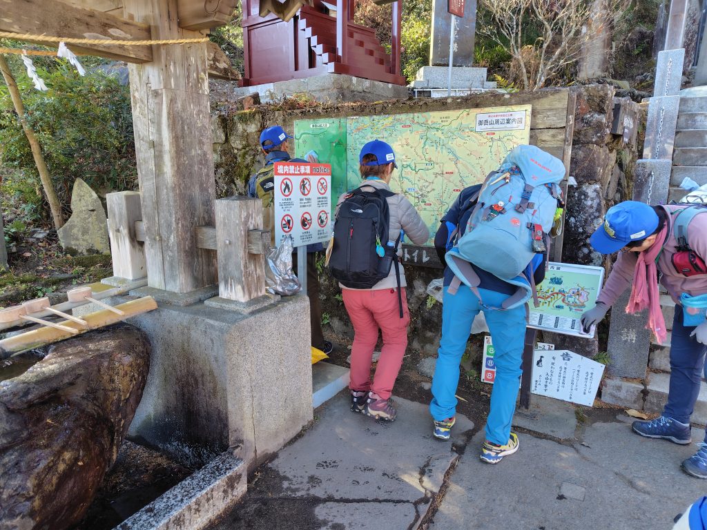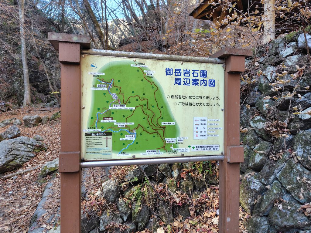 奥の院口トイレの使用状況を確認し、本日の活動はほぼ終了しました。なお、御岳ビジターセンターへ戻る途中で、ロックガーデンへ向かおうとしているハイカーに声掛けを実施しました。武蔵御岳神社下の案内板では、カップルがこれからロックガーデンに向かう相談をしていたので、日没も早く時間的にもギリギリであり、「無理をしないでまたの機会を」とアドバイスをして納得して引き返してもらいました。