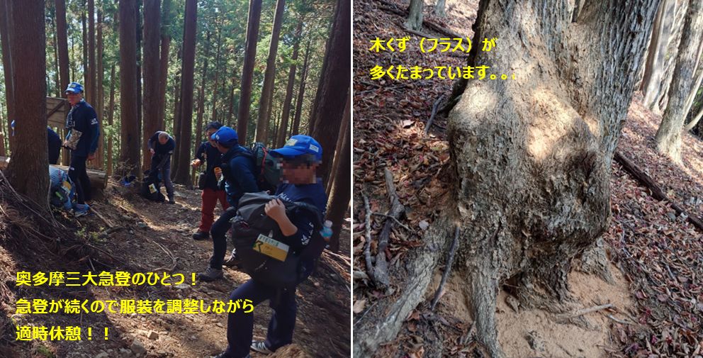 ◆明日から寒気が入ってくる予報の1日前。少し穏やかな陽気でした。奥多摩三大急登のひとつの六ツ石山へのルート。水分補給、体調を管理しながらの巡回となりました。