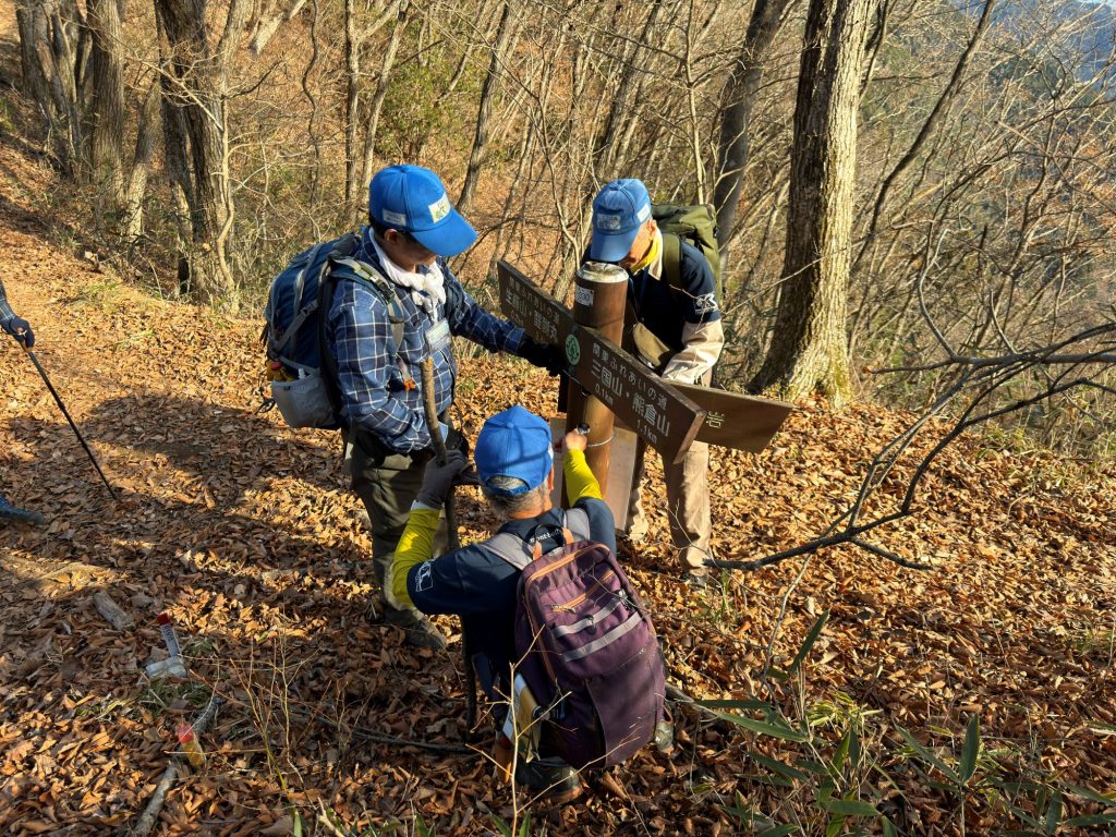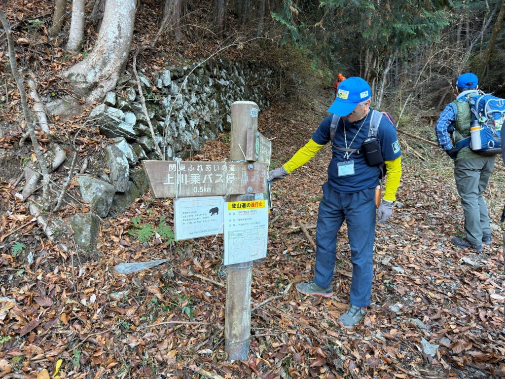 今回は、「関東ふれあいの道」(首都圏自然歩道)のコースの一つである、「富士見のみち」を巡視しました。「関東ふれあいの道」は、環境省の構想に基づき設置(整備は各都県)された自然歩道で、関東地方一都六県を一周する長距離自然歩道です。総延長は1800kmに及び、東京都では7コース約74.4kmが設定されています。今回巡視した、「富士見のみち」は、上川乗BSから陣馬高原下BSまでの14.7kmの区間となります。富士山を眺めながら都県境の笹尾根を辿る快適な尾根歩きのコースとなっています。奥多摩にあっても、比較的静かな山歩きが楽しめることから四季を問わず訪れるハイカーの多いコースとなっています。巡視コースとしては距離が長いことから、頻繁な登山道点検などが難しいコースでもあります。日の短い時期ではありましたが、通しで巡視し登山道の様子や指導標、案内板、設備の点検を実施しました。