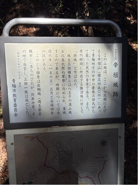 巡回コース:軍畑9:30→雷電山入口10:00→辛垣城(からかいじょう)11:50→三方山→矢倉台14:20→青梅鉄道公園16:00→青梅駅16:20