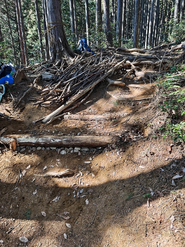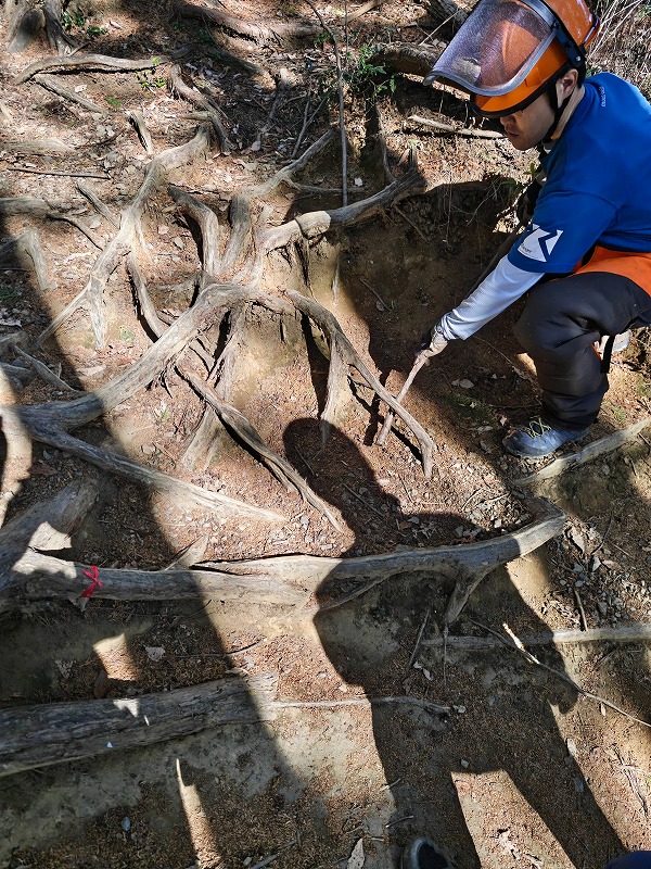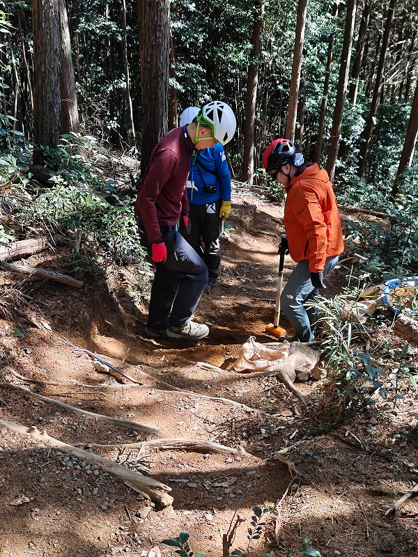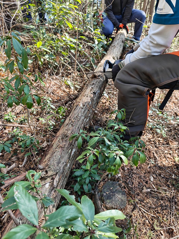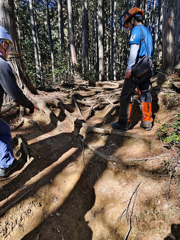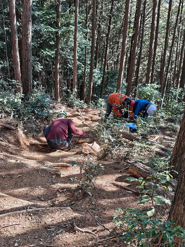 今日はJR御岳駅から惣岳山へ向かって約15分・100メートルほど登ったポイントで保全作業を実施しました。