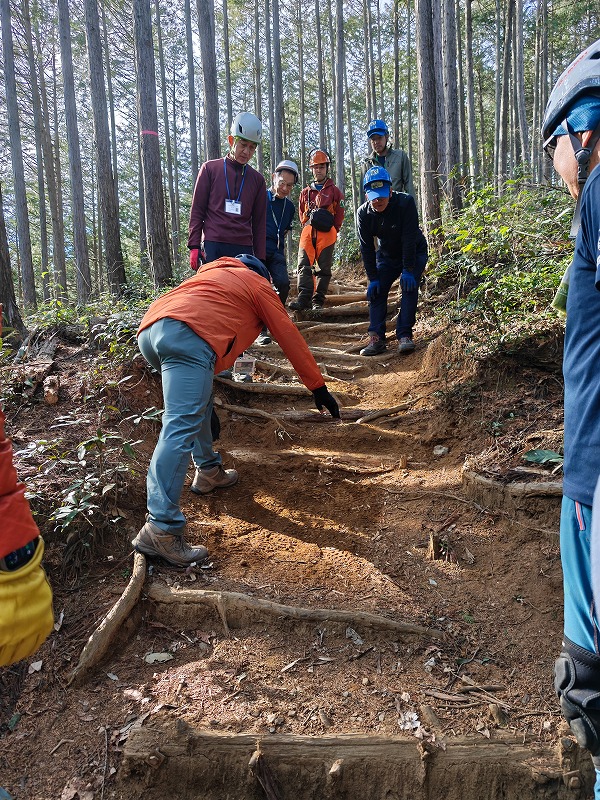 御岳駅から登ってくる人は少なく御岳駅へ下りていく人が圧倒的に多く、今回実施した段差の解消は作業の意義を感じることのできる活動でした。
