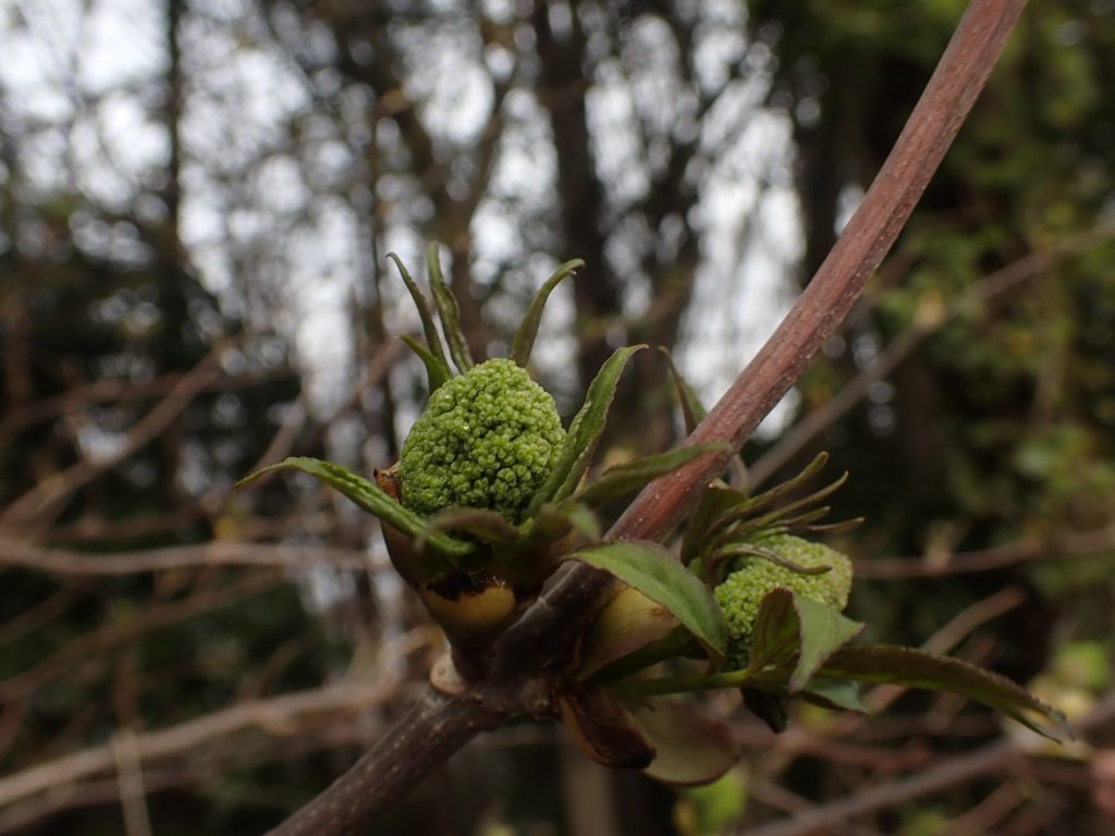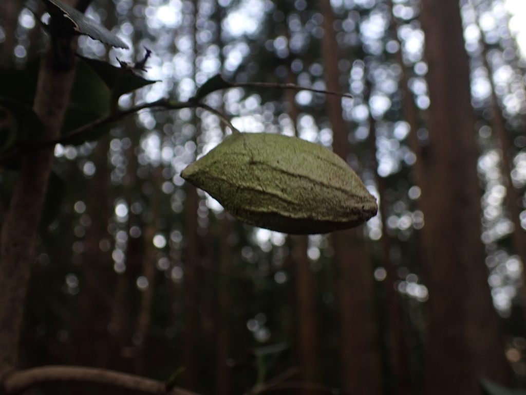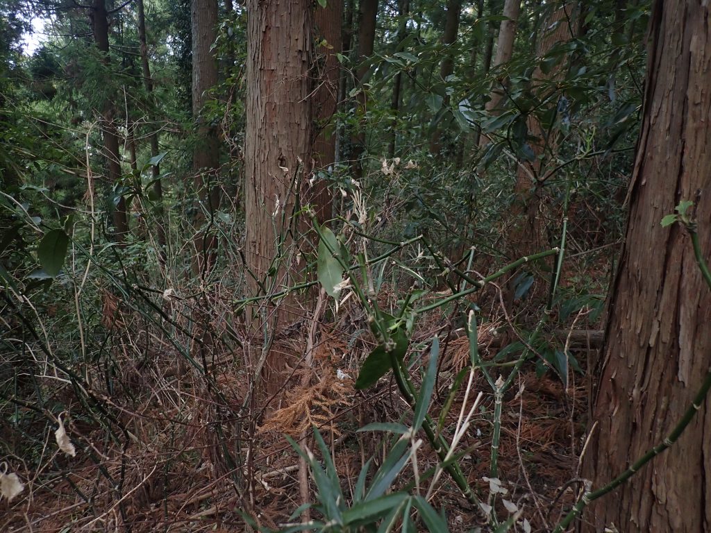 アオキの葉はあちこちで鹿に食べられて茎だけになっていました…。