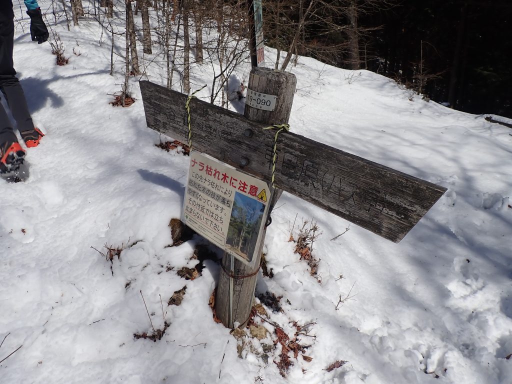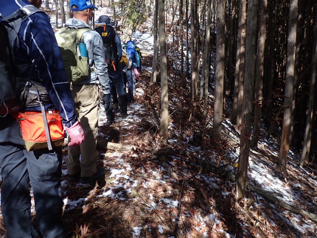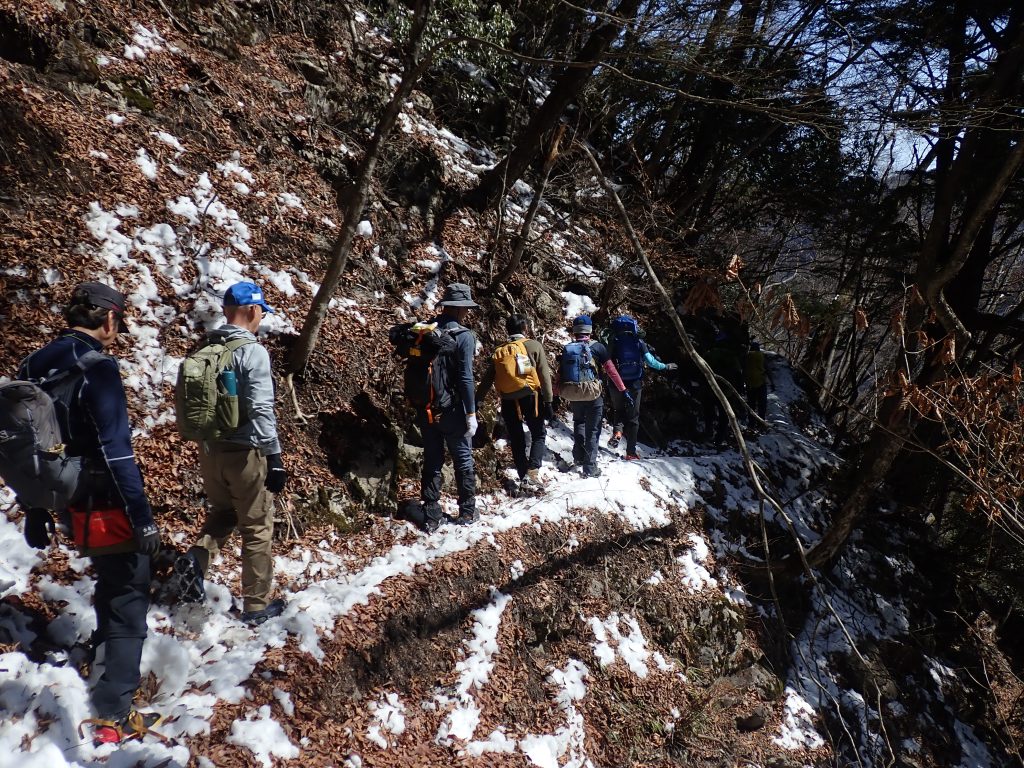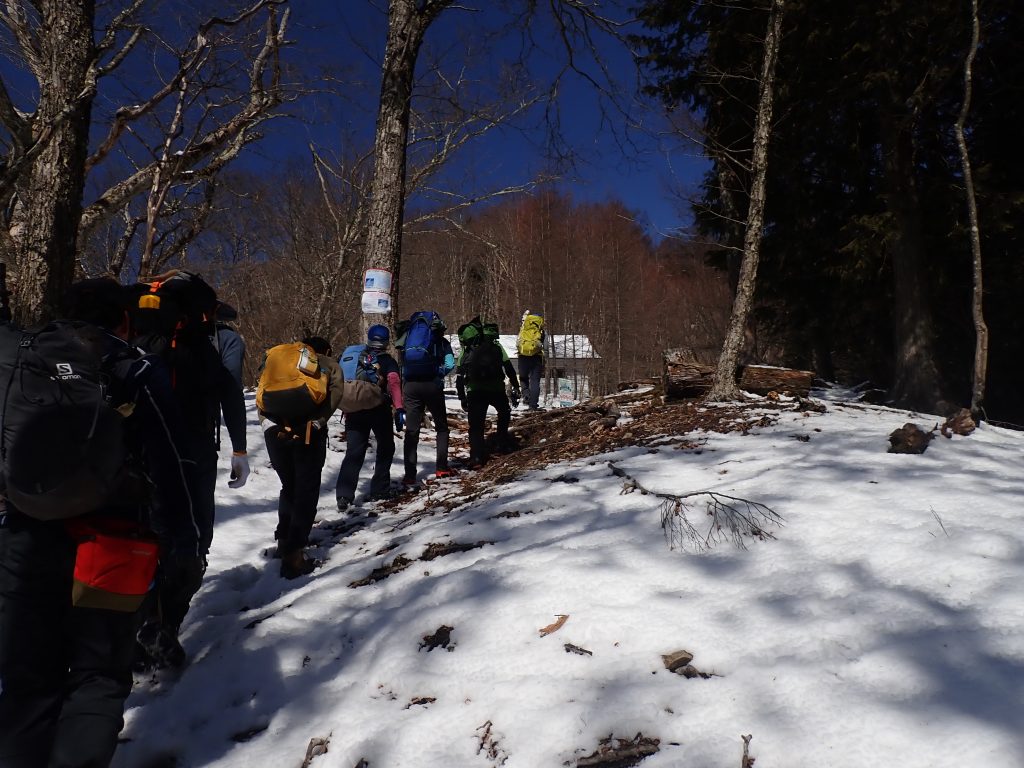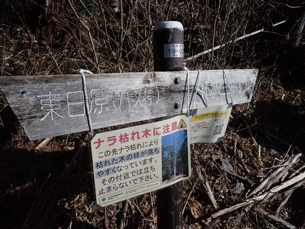 三ツドッケ(天目山)まで行く予定でしたが、雪道であることや落枝の処理で時間がかかり、東日原のバス時間が微妙になってしまったので、今回は避難小屋までとし下山することにしました。