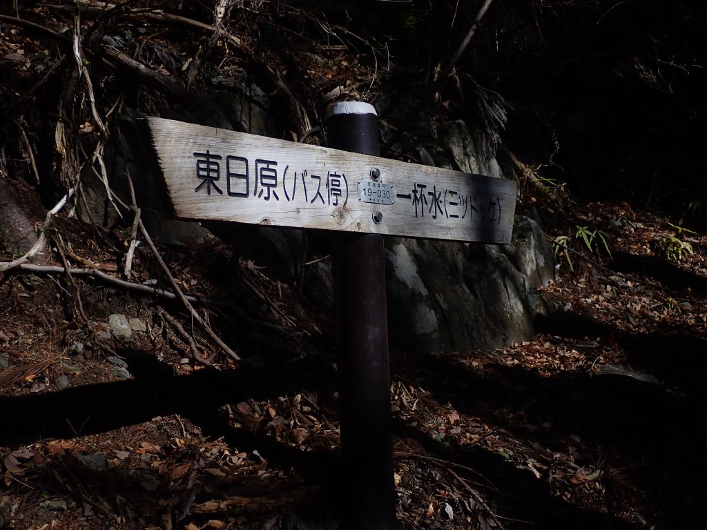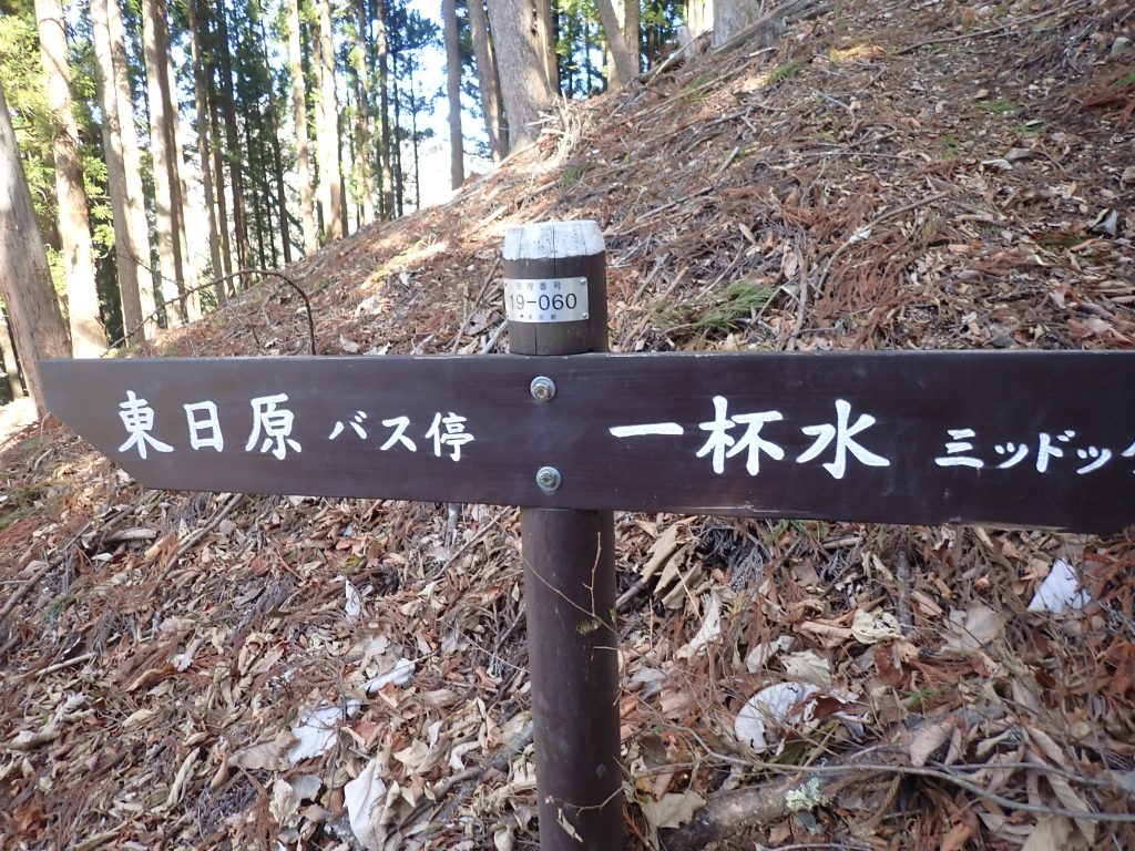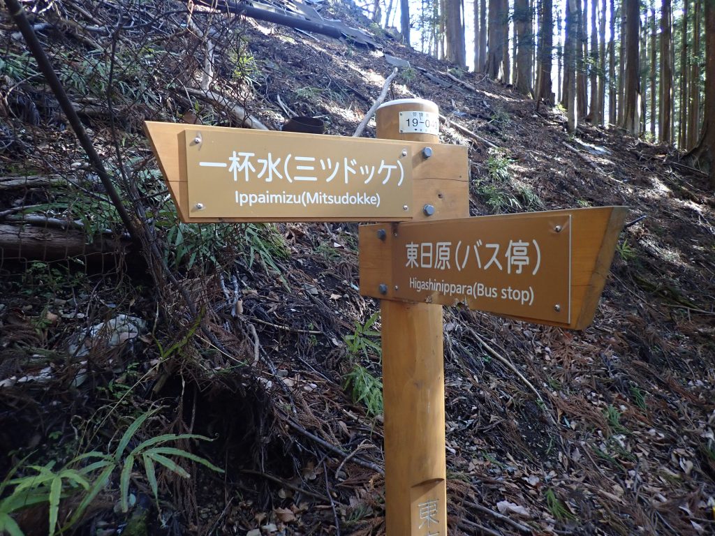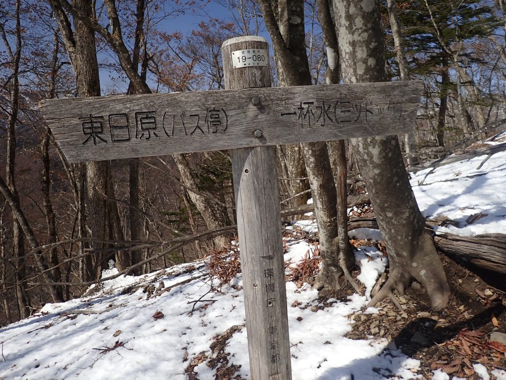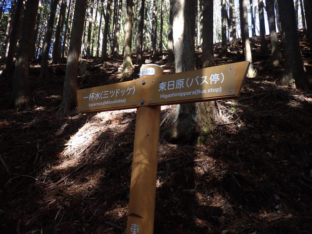 コース:東日原バス停→一杯水避難小屋→東日原バス停