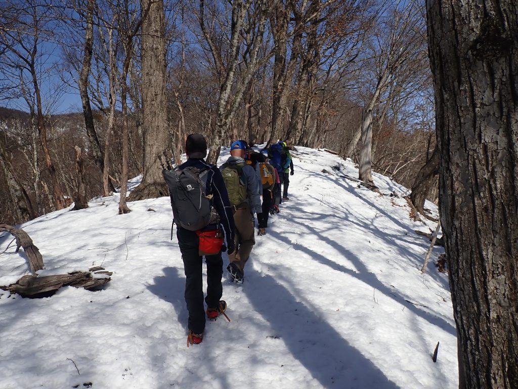トラバースを抜けて広い尾根道。ここはノートレースでした。リーダーの的確なルートファインディングに付いていきます。