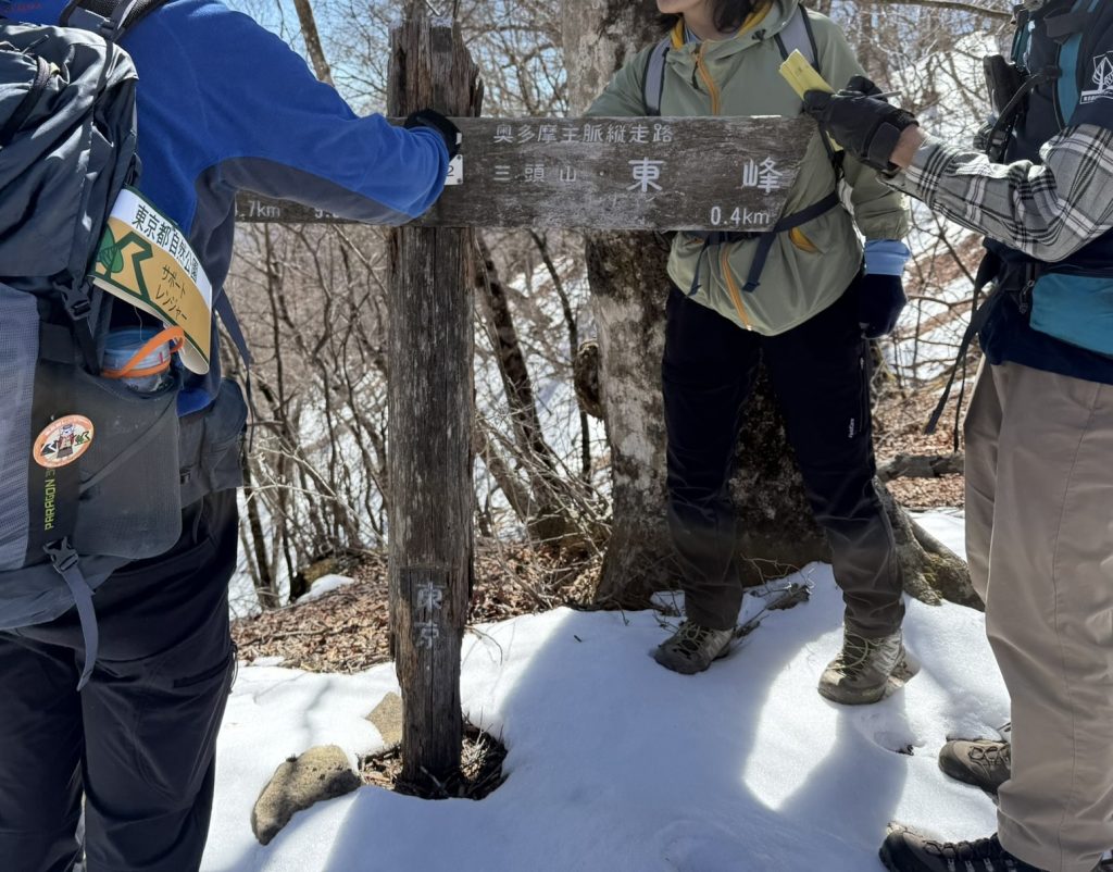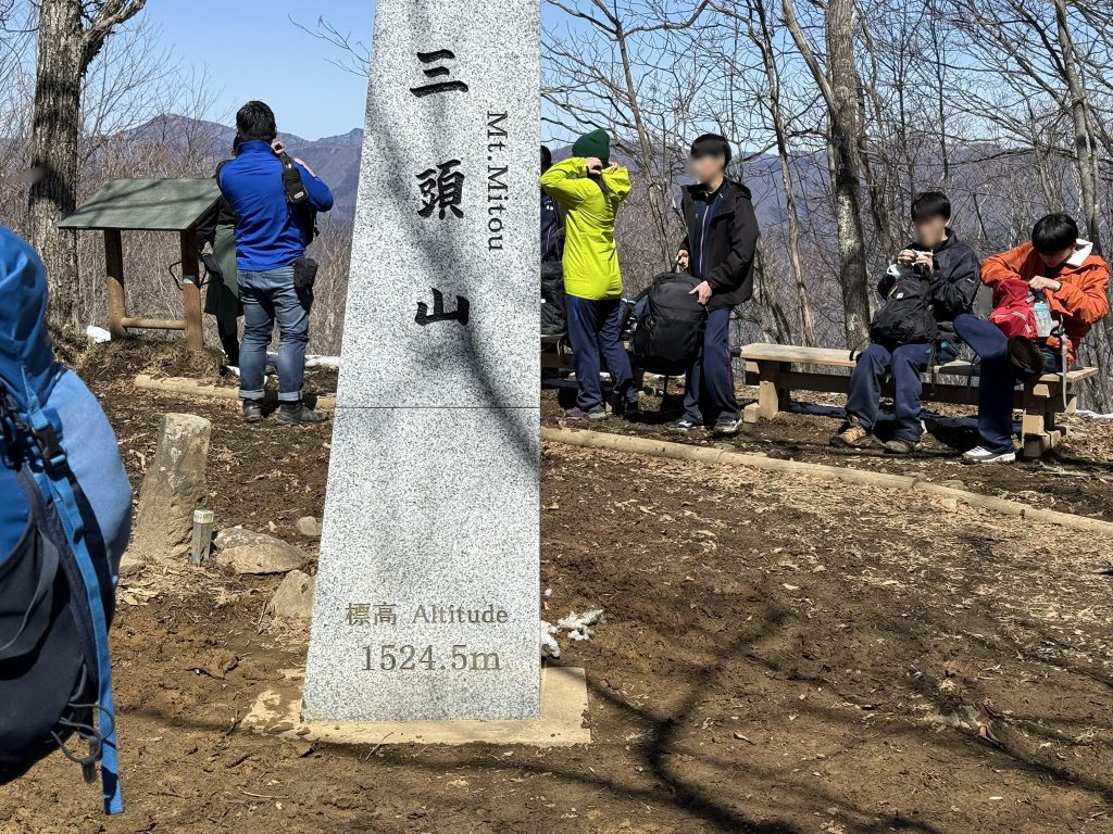 三頭山中央峰に11時に到着。山頂部はお昼時ということもあって、多くのハイカーがごはん中でした。